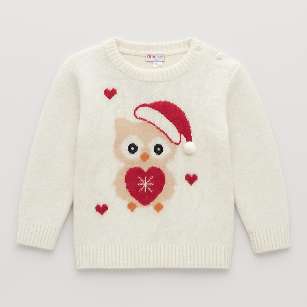 Questo adorabile maglione bianco è il perfetto compagno per le feste! Realizzato in morbido materiale, presenta un dolce gufo con cappello di Natale e un cuore rosso, che lo rendono ideale per i momenti più festosi. Con maniche lunghe e un design accogliente, offre comfort e calore durante le giornate invernali. I bottoni sulle spalle aggiungono un tocco pratico e carino. Nonostante sia un capo usato, è in ottime condizioni e pronto a far brillare il sorriso sul volto del tuo piccolo. Un must-have per un look festivo e trendy!
