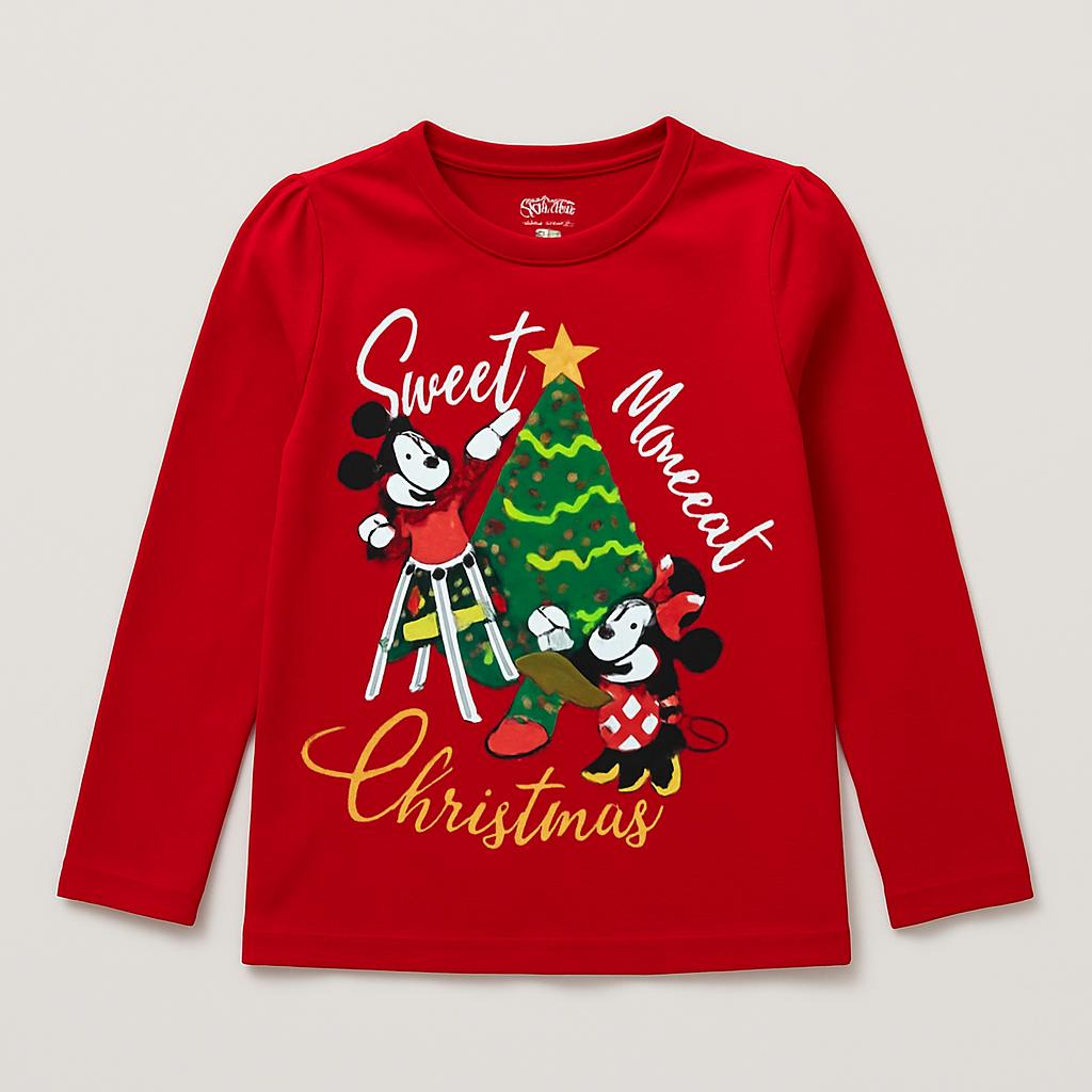 Questa adorabile t-shirt rossa, decorata con i celebri personaggi di Mickey e Minnie Mouse, è perfetta per le festività! Con la scritta "Sweet Moment" e un alberello di Natale, porterà un sorriso durante le celebrazioni. Le maniche lunghe offrono comfort per le giornate più fresche, mentre il morbido cotone assicura massima comodità. Nonostante sia usata, si presenta in ottime condizioni, pronta per vestire i piccoli in modo festoso e divertente. Un capo indispensabile per le piccole fan di Disney durante il periodo natalizio!