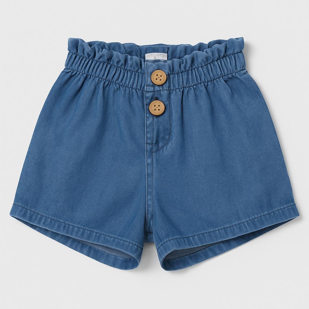 Questi adorabili pantaloni corti in denim blu sono un'aggiunta perfetta al guardaroba estivo della tua piccola! Con un elastico in vita e due bottoni decorativi, offrono comfort e stile in un colpo solo. Il loro taglio leggero e rilassato è ideale per giocare all'aperto, mentre la tonalità di denim si abbina facilmente a magliette e top colorati. Perfetti per le avventure estive o le passeggiate nel parco, questi pantaloni corti usati sono in ottime condizioni e pronti per essere indossati in nuove avventure!
