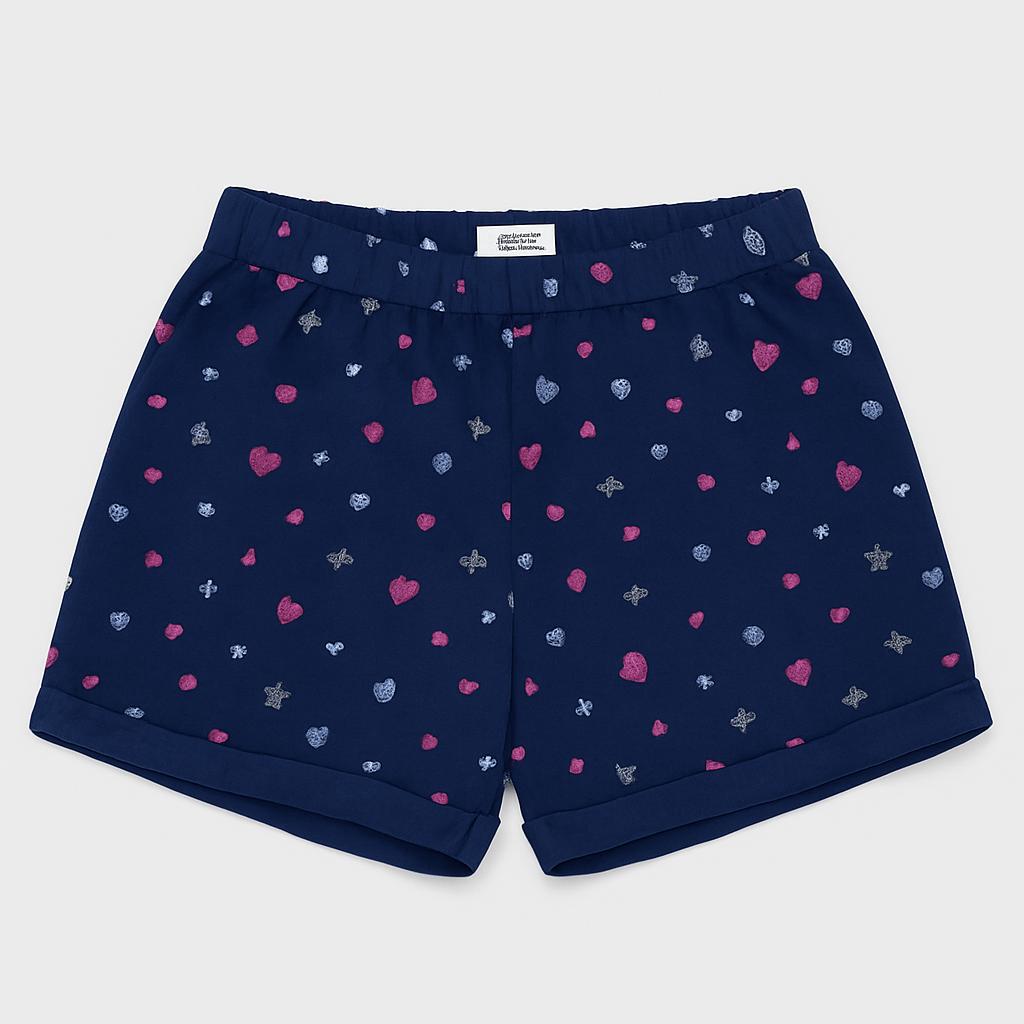 Questi adorabili pantaloni corti blu scuro porteranno un sorriso sul volto della tua piccola! Decorati con dolci cuori e stelle colorate, aggiungono un tocco di fantasia e allegria. La vestibilità comoda e l'elastico in vita garantiscono libertà di movimento, perfetta per giocare e divertirsi. Ideali per le calde giornate estive, questi pantaloni corti usati sono in buone condizioni e pronti per essere indossati in nuove avventure. Un capo essenziale e stiloso per le piccole sognatrici!