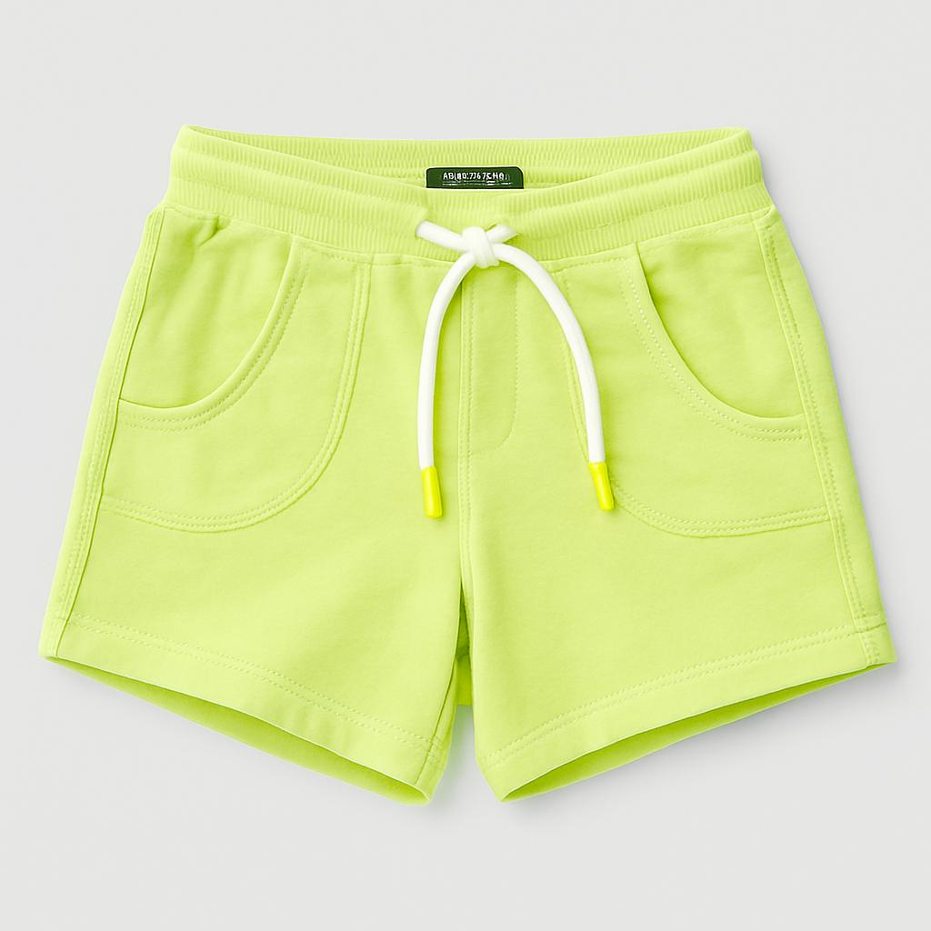 Questi vivaci pantaloni corti giallo lime sono perfetti per l'estate! Realizzati in un morbido cotone, offrono comfort e freschezza per le giornate di sole. Dotati di due pratiche tasche e di un elastico in vita con cordino regolabile, permettono libertà di movimento e stile. Nonostante siano di seconda mano, sono in ottime condizioni e pronti per avventure estive! Un capo indispensabile per ogni piccolo esploratore che ama divertirsi all'aperto!