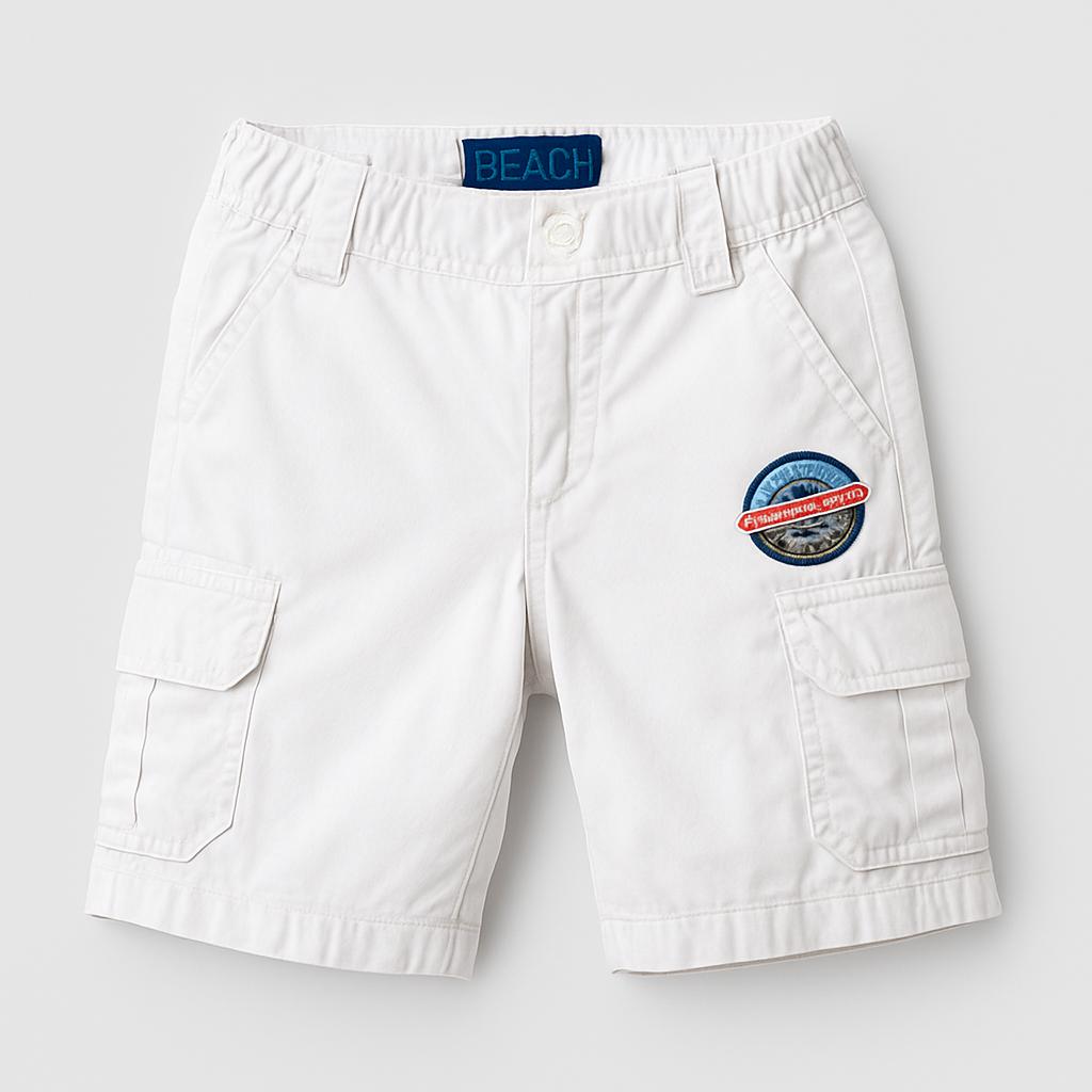 Questi adorabili pantaloni shorts bianchi sono perfetti per le avventure estive dei tuoi piccoli! Realizzati in un tessuto leggero e resistente, offrono comodità e libertà di movimento. Decorati con un simpatico badge che richiama la spiaggia, danno un tocco di stile al look estivo. Le tasche laterali sono pratiche per riporre piccoli tesori trovati durante le giornate di gioco. Nonostante siano usati, si presentano in buone condizioni, pronti per essere indossati durante le giornate di sole. Un capo da avere assolutamente nel guardaroba dei piccoli esploratori!