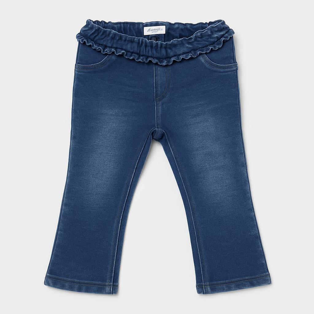 Questi adorabili jeans in denim blu, con vita elasticizzata, sono perfetti per le piccole esploratrici che amano muoversi con stile! La delicata arricciatura sulla parte superiore aggiunge un tocco femminile e allegro, rendendoli un capo versatile per ogni occasione. Facili da abbinare, possono essere indossati con t-shirt colorate per un look casual o con bluse per occasioni speciali. Nonostante siano usati, si presentano in ottime condizioni, pronte a vivere nuove avventure! Un must-have nel guardaroba delle più piccole!