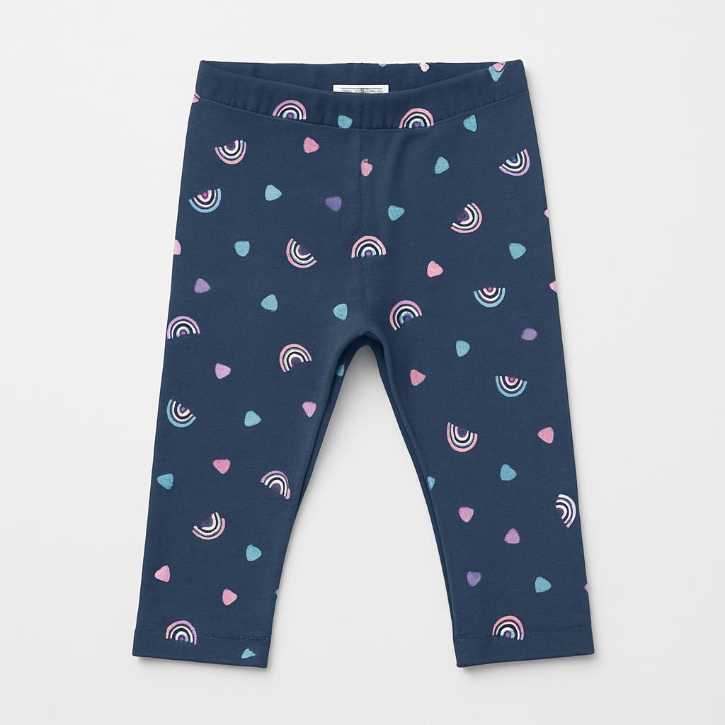 Questi simpatici leggings a fantasia di arcobaleni e cuoricini porteranno un sorriso nel guardaroba della tua piccola! Realizzati in morbido cotone elasticizzato, offrono comfort e libertà di movimento per ogni avventura. Il colore blu scuro fa risaltare i vivaci disegni, rendendo ogni outfit allegro e giocoso. Con una vita elastica, sono facili da indossare e perfetti per una giornata al parco o per un pomeriggio di giochi in casa. Leggeri e versatili, questi leggings usati si trovano in ottime condizioni e sono pronti a far brillare il look della tua bimba!
