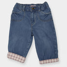 Questi adorabili pantaloni in denim sono perfetti per i piccoli esploratori! Realizzati con un cotone resistente, presentano un classico lavaggio blu che si abbina facilmente a tanti outfit. La comoda vita elastica assicura una vestibilità perfetta, mentre il risvolto a fantasia quadrettata aggiunge un tocco di originalità. Ideali per il gioco all'aperto o per un look casual-chic, questi pantaloni usati sono in buone condizioni e pronti per essere indossati da un piccolo stile unico! Un must-have per ogni guardaroba!