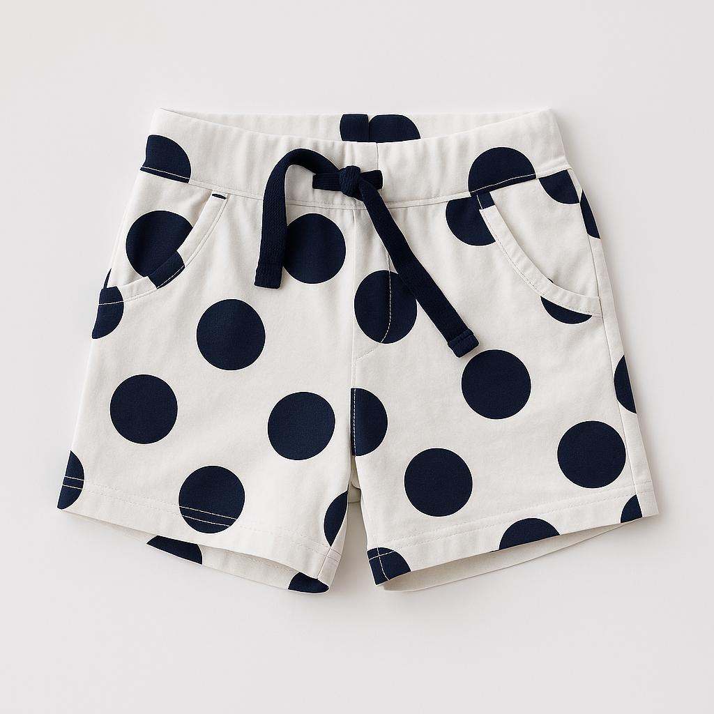 Questi adorabili pantaloni corti bianchi con grandi pois blu navy sono perfetti per le calde giornate estive! Realizzati in morbido cotone, offrono comfort e freschezza per le avventure all'aperto. La vita elastica con coulisse assicura una vestibilità ideale, mentre le pratiche tasche laterali sono perfette per riporre piccoli tesori durante il gioco. Nonostante siano usati, sono in ottime condizioni e pronti a donare un tocco di allegria al guardaroba dei bambini. Un capo versatile e divertente per le piccole fashioniste!