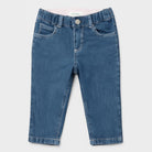 Questi adorabili pantaloni in denim sono il perfetto mix di comfort e stile per il tuo piccolo! Realizzati in un morbido materiale, presentano un vivace lavaggio blu che si abbina facilmente a tutte le magliette. La vita elasticizzata garantisce una vestibilità comoda e sicura, ideale per la libertà di movimento durante il gioco. Con pratiche tasche frontali e un design alla moda, questi pantaloni sono perfetti per ogni avventura quotidiana. Anche se usati, sono in ottime condizioni e pronti a essere indossati da un nuovo mini stile! Un capo essenziale da avere nel guardaroba!