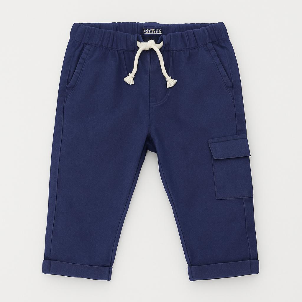 Questi pantaloni blu scuro sono un'aggiunta versatile e comoda per il guardaroba del tuo bambino! Realizzati in un morbido tessuto cotonato, offrono una sensazione di leggerezza perfetta per ogni avventura. La vita elastica con cordoncino permette una vestibilità sicura e regolabile, mentre la tasca laterale aggiunge un tocco moderno e pratico. I dettagli a pieghe e le gambe arrotolate donano un aspetto trendy e alla moda. Anche se sono usati, sono in ottime condizioni e pronti per nuove esplorazioni! Un capo ideale per giochi all'aperto o per un look casual-chic!
