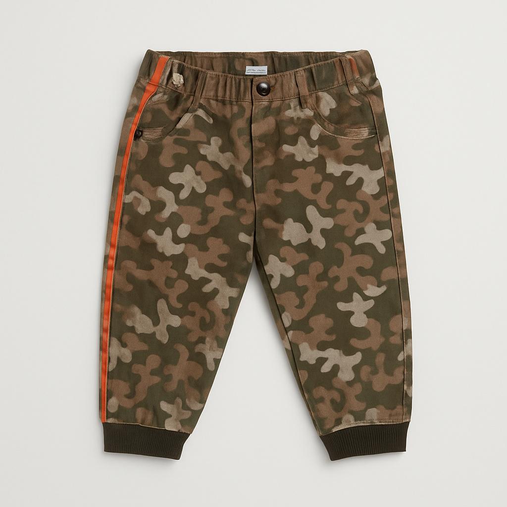 Questi divertenti pantaloni cargo in stile camouflage sono perfetti per i piccoli esploratori! Realizzati in morbido cotone, offrono una vestibilità comoda e versatile, ideale per ogni avventura. Il colore marrone con dettagli grigio e arancione aggiunge un tocco vivace, mentre le tasche laterali sono perfette per conservare tesori segreti. Anche se usati, si presentano in ottime condizioni e saranno il capo ideale per divertirsi all'aperto o per un look casual e trendy. Un must-have nel guardaroba di ogni bambino!