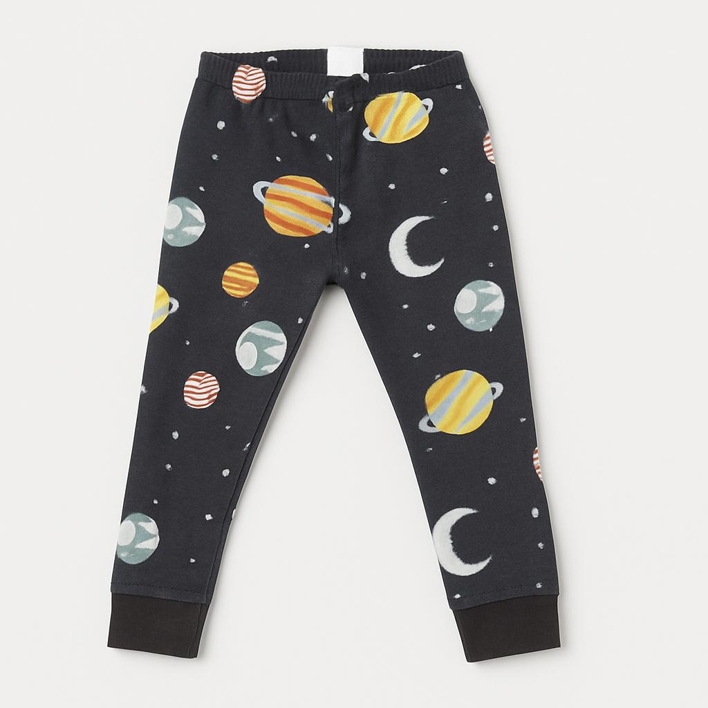Questi fantastici leggins a tema spaziale renderanno felice ogni giovane esploratore! Realizzati in un morbido tessuto, presentano un adorabile motivo di pianeti e lune multicolori su uno sfondo grigio scuro. Il taglio aderente e l'elastico in vita garantiscono massima comodità durante ogni avventura, sia a casa che all'aperto. Perfetti per momenti di gioco o relax, questi leggins usati sono in ottime condizioni e pronti per accompagnare il tuo piccolo in nuove galassie di divertimento! Un capo ideale per un guardaroba creativo!