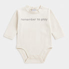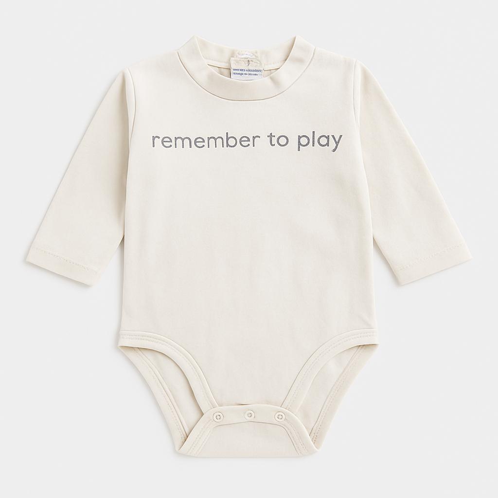 Questo adorabile body a maniche lunghe è perfetto per il tuo piccolo esploratore! Realizzato in morbido cotone, il suo delicato colore panna lo rende versatile e comodo da abbinare. Sul fronte, la scritta “remember to play” invita a divertirsi e a scoprire il mondo con gioia. I bottoncini sulle spalle facilitano il cambio e il design pratico permette una libertà di movimento totale. Anche se usato, il body è in ottime condizioni, pronto a vestire il tuo bimbo con stile e comfort durante le sue avventure quotidiane! Un capo imprescindibile per ogni guardaroba infantile!