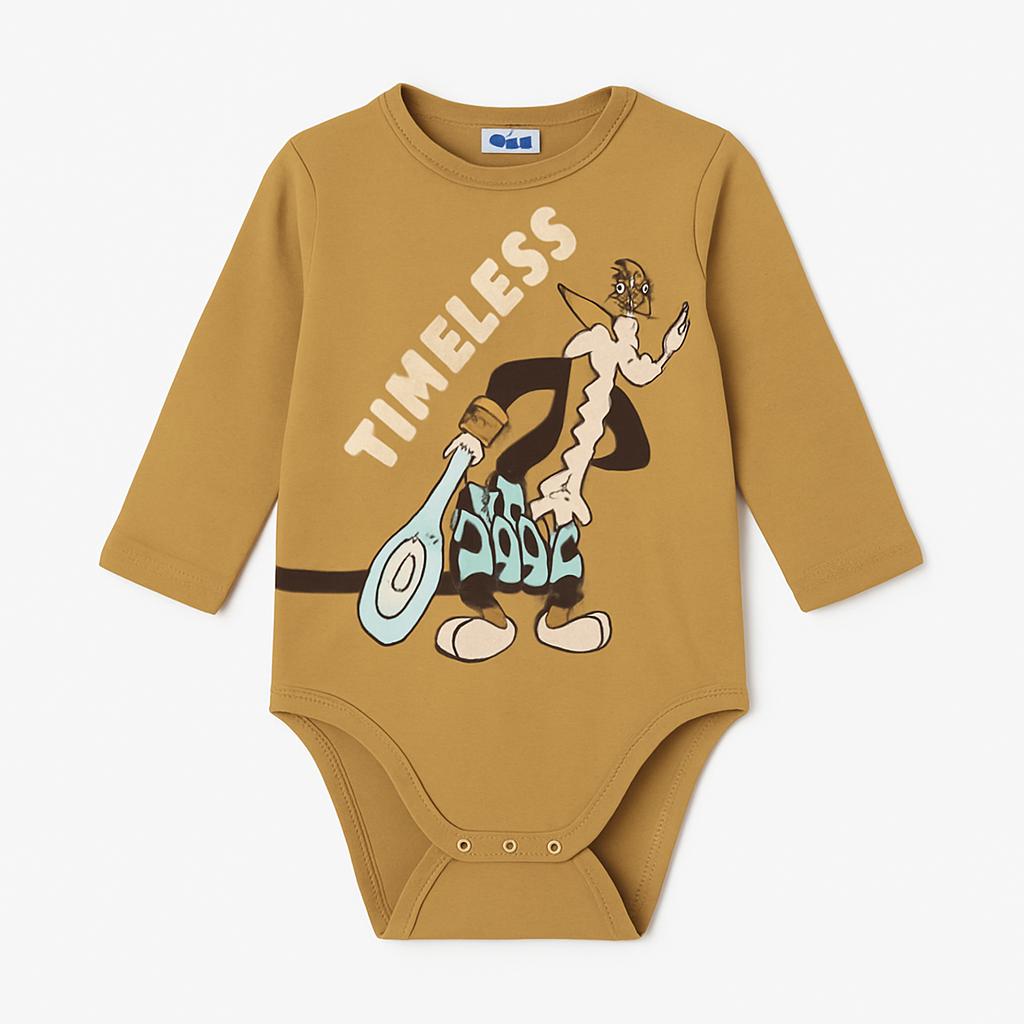 Questo adorabile body all'uncinetto è un vero gioiello per i più piccoli! Realizzato in morbido cotone, presenta un delizioso design con l'iconico personaggio di un cartone animato, accompagnato dalla scritta "TIMELESS". Il suo caldo colore senape è perfetto per ogni occasione. Le maniche lunghe garantiscono comfort e protezione nelle fresche giornate, mentre i bottoni a pressione sul fondo facilitano il cambio. Nonostante sia un capo usato, è in ottime condizioni e pronto a diventare parte del guardaroba del tuo piccino! Un must-have per i piccoli amanti della moda!