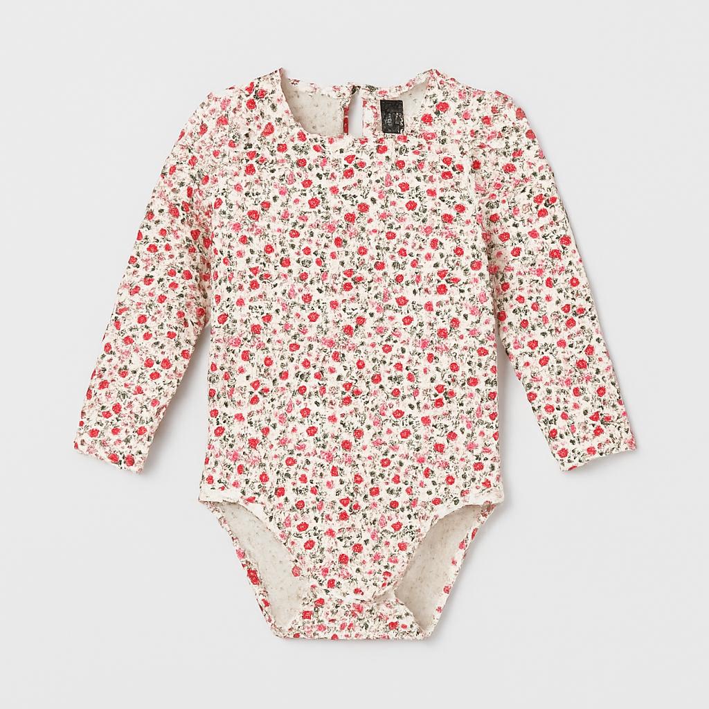 Questo adorabile body a maniche lunghe è perfetto per le piccole fashioniste! Caratterizzato da un delicato motivo floreale con sfumature di rosa e bianco, aggiunge un tocco romantico e girly a qualsiasi look. Le piccole ruches sulle spalle donano un fascino extra e rendono questo capo unico e stiloso. Realizzato in cotone morbido e confortevole, è ideale da indossare durante le fresche giornate primaverili o estive. Nonostante sia usato, è in ottime condizioni, ancora pronto a far fiorire il guardaroba della tua bimba! Un must-have per ogni piccola amante della moda!