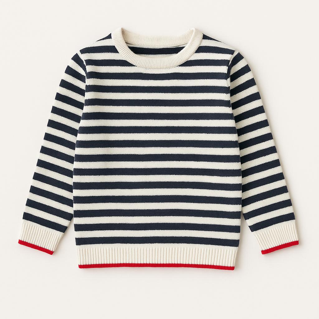 Questo dolce maglione a righe è un capo intramontabile per i piccoli stilisti in erba! Realizzato in morbido cotone, offre calore e comfort per ogni avventura. Le eleganti righe bianche e nere sono abbellite da un delicato dettaglio rosso sul bordo, aggiungendo un tocco di vivacità. Le maniche lunghe lo rendono perfetto per le fresche giornate autunnali e invernali. Anche se è un capo usato, è in ottime condizioni, pronto per accompagnare ogni momento di gioco e scoperta. Un must-have per ogni guardaroba bambino!