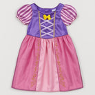 Incanta con questo splendido vestito da principessa! Ispirato a Rapunzel, questo abito è un sogno ad occhi aperti per ogni piccola amante delle favole. Con maniche a sbuffo in delicate sfumature di viola e rosa e una gonna sognante, il vestito è impreziosito da dettagli in oro e un adorabile fiocchetto sul corpetto. La leggerezza del tessuto consente una libertà di movimento perfetta per ballare e giocare. Sebbene sia un capo usato, mantiene una bellezza incantevole e si presenta in buone condizioni. Un autentico passpartout per giochi di ruolo e divertimento!