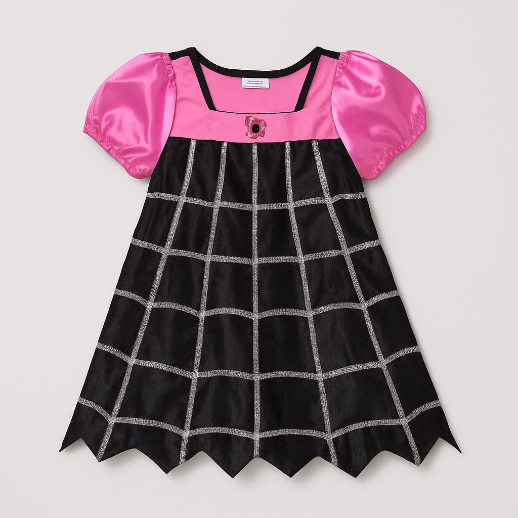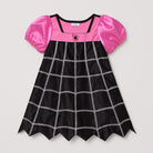 Questo incantevole vestito da fata dei ragni porterà magia e avventura nel guardaroba della tua piccola! Con una base nera, è decorato da un elegante motivo a rete grigia che aggiunge un tocco misterioso. Le maniche a sbuffo di un delizioso rosa sono morbide e leggere, perfette per ballare e giocare.