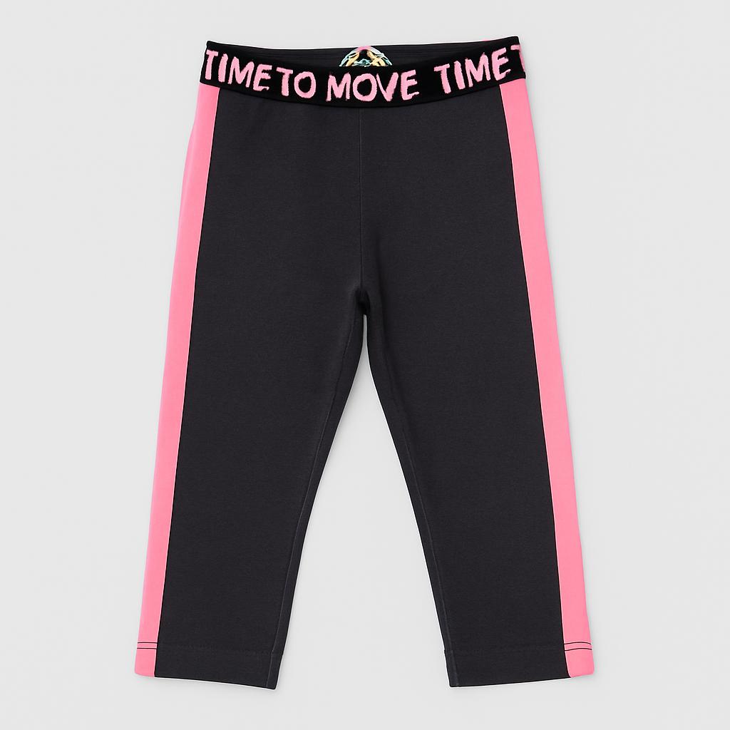Questi adorabili leggings da bambina uniscono comfort e stile! Realizzati in morbido tessuto elasticizzato, presentano un colore scuro impreziosito da bande laterali rosa vivaci e una comoda cintura con la scritta “TIME TO MOVE”. Perfetti per le piccole pioniere dell'avventura, sono ideali per ogni attività, dalla scuola ai giochi nel parco. Nonostante siano capi usati, sono in ottime condizioni e pronti a regalare giornate di divertimento e libertà! I leggings essenziali per ogni guardaroba giovane e dinamico!