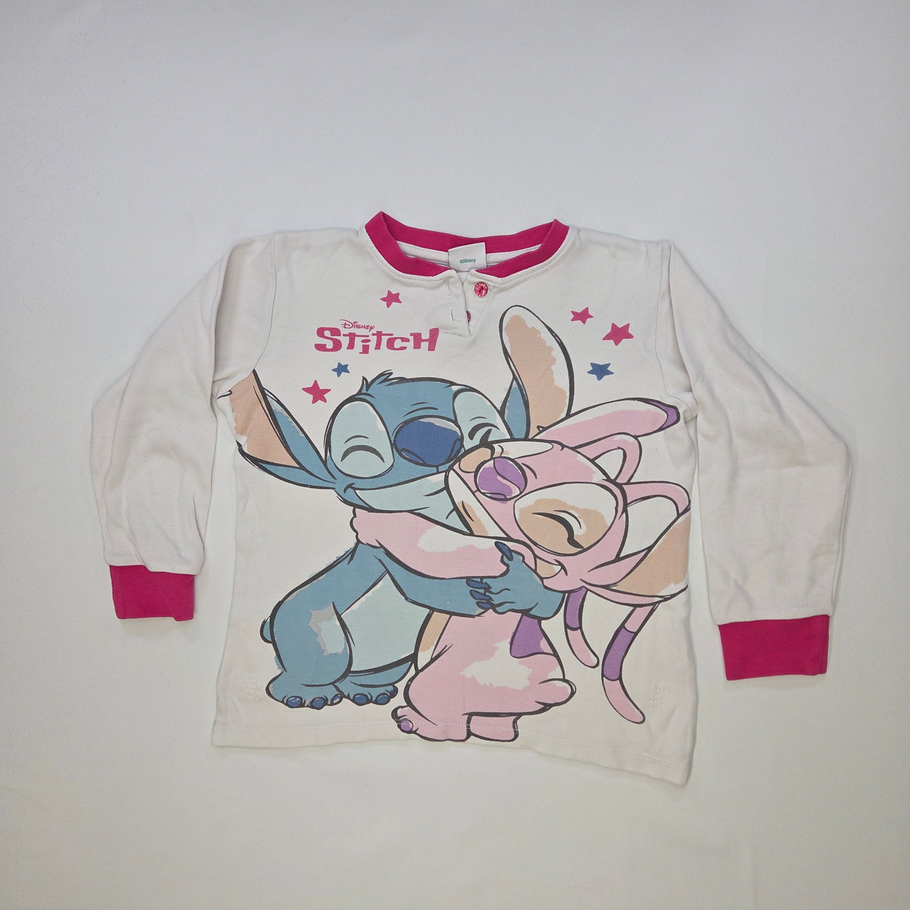 Questa affascinante maglietta a maniche lunghe di Disney è perfetta per i piccoli amanti di Stitch! Con un dolce abbraccio tra Stitch e Lilo stampato sul fronte, porta un messaggio di amicizia e affetto. Realizzata in cotone morbido, offre comfort e calore durante le fresche serate. Le maniche lunghe e il collo con bottoncini rossi aggiungono un tocco di stile giocoso, rendendola ideale per rilassarsi a casa o per una notte da sogni incantati. Nonostante sia un pezzo usato, presenta ottime condizioni, pronta per essere indossata da un piccolo fan della Disney! Un must-have per i nottambuli che amano l’avventura.