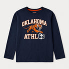 Questa fantastica maglietta a maniche lunghe è perfetta per i piccoli sognatori! Realizzata in morbido cotone di colore blu scuro, presenta una vivace grafica con il tigre e la scritta "Oklahoma ATHL 62" che conferirà un tocco di spirito sportivo e avventuroso al guardaroba. Il taglio comodo la rende ideale per qualsiasi occasione, dalle giornate trascorse a giocare all'aperto alle uscite con amici e familiari. Nonostante sia un capo usato, si presenta in buone condizioni e pronto per essere indossato da un piccolo esploratore! Un'aggiunta irresistibile per i fan dello stile casual!
