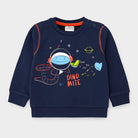 Questo adorabile maglione blu scuro porterà un sorriso sul viso del tuo piccolo astronauta! Con un design vivace che presenta un simpatico personaggio spaziale e pianeti colorati, è perfetto per i piccoli esploratori. Realizzato in un morbido tessuto, questo capo garantisce comfort durante le avventure quotidiane. Le maniche lunghe e il colletto a righe arancioni aggiungono un tocco di stile, rendendolo ideale per le giornate fresche. Anche se è un capo usato, è in ottime condizioni e pronto a vivere nuove avventure! Un must-have per ogni piccolo amante dello spazio!