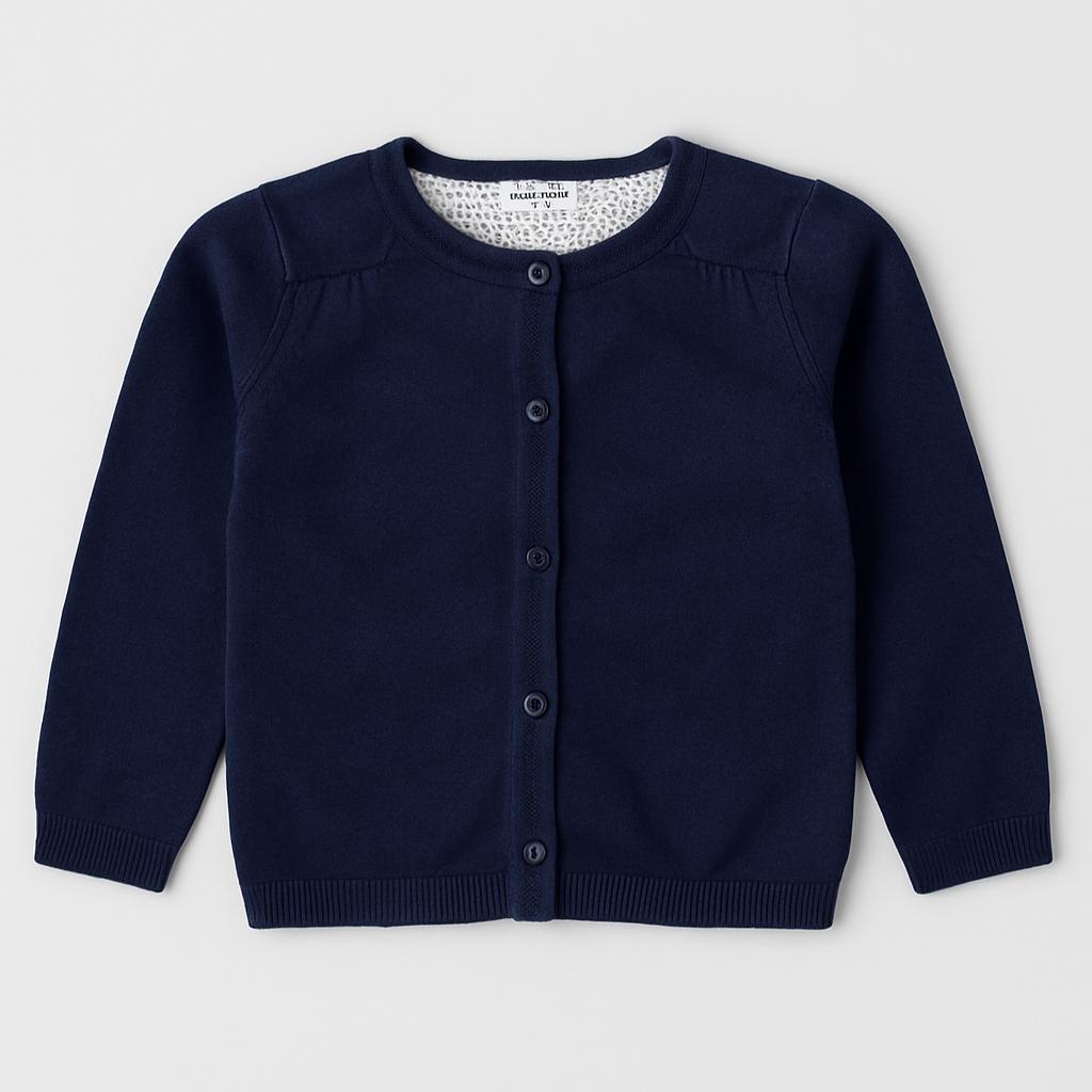 Questo adorabile cardigan blu navy è un capo versatile e classico, perfetto per le fresche giornate primaverili e autunnali! Realizzato in un morbido filato, offre comfort e calore. Con il suo design semplice e i bottoni frontali, è facile da indossare e sfoggiare sopra una t-shirt o una camicina. Le maniche lunghe e il taglio leggermente sceso sulle spalle lo rendono super trendy. Anche se è un capo usato, è in ottime condizioni e pronto per essere indossato dalla tua piccola esploratrice! Un’aggiunta indispensabile nel guardaroba di ogni bambino!