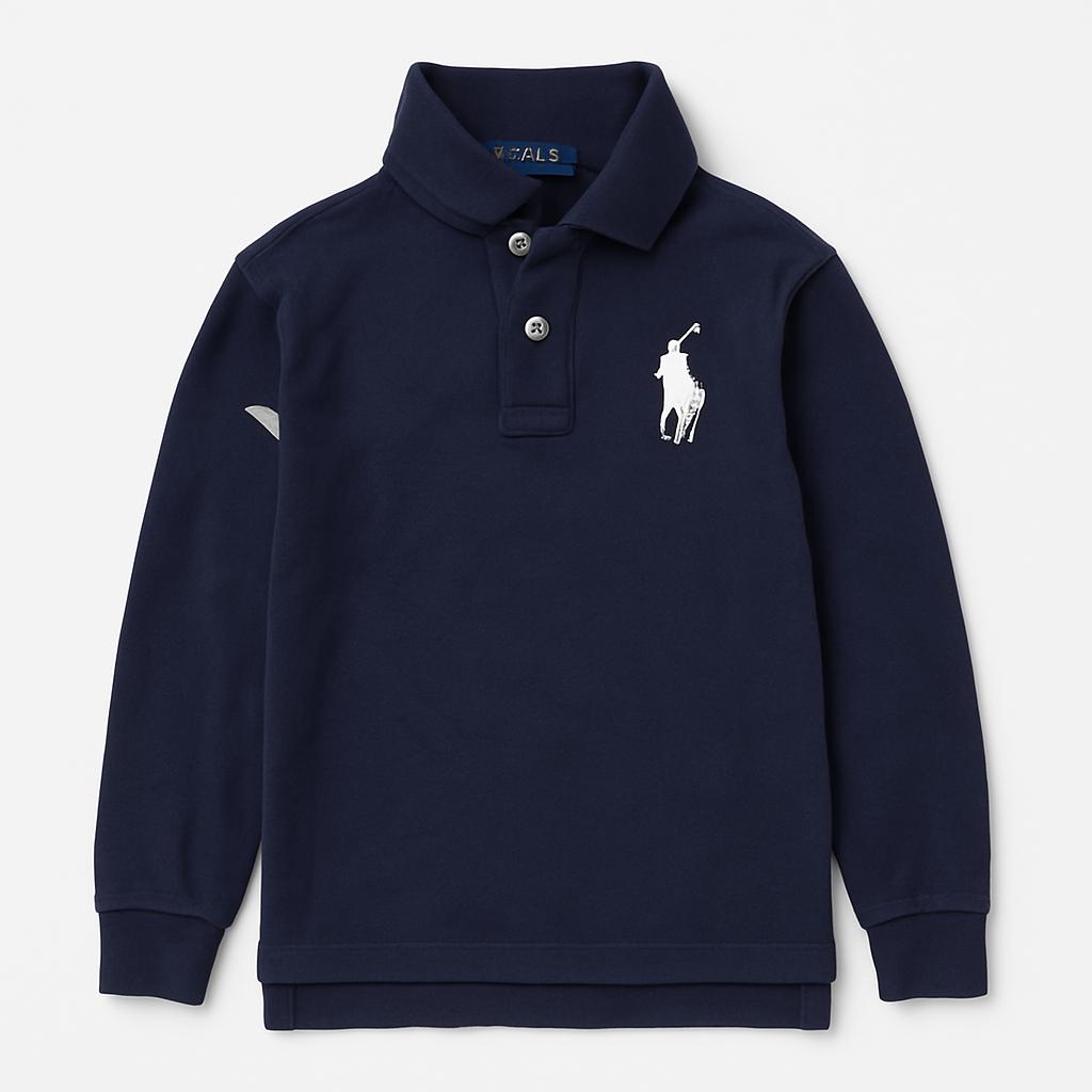 Questo elegante polo a maniche lunghe di Ralph Lauren è un capo imperdibile per i piccoli amanti dello stile casual-chic! Realizzata in un morbido cotone blu scuro, presenta un colletto classico e una chiusura con bottoni che aggiunge un tocco raffinato. Sul lato sinistro, il celebre cavallino ricamato in bianco porta un'aria di distinzione. Nonostante qualche segno d’uso, la polo è in buone condizioni e pronta a dare nuova vita al guardaroba del tuo bambino. Ideale per le giornate fresche, è perfetta da abbinare a jeans o pantaloni casual per un look trendy e comodo!