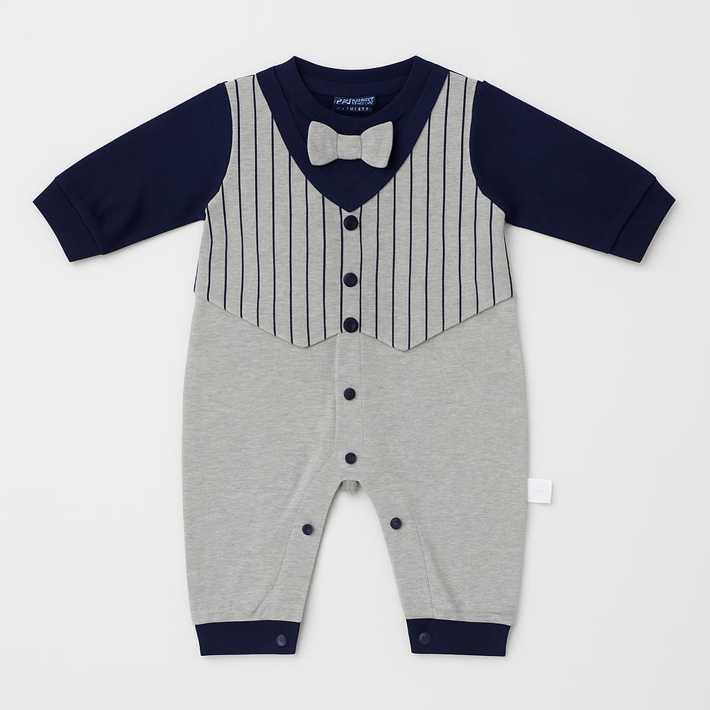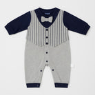 Questo adorabile body neonato unisce eleganza e comfort in un'unica combinazione! Realizzato con un mix di tessuti morbidi, il design presenta una parte superiore blu scuro con una simpatica "giacca a righe" e un piccolo papillon grigio, perfetto per far sentire il tuo bimbo un vero mini gentleman. Le maniche lunghe e la chiusura a bottoni rendono il cambio facile e veloce. Anche se si tratta di un capo usato, è in ottime condizioni, pronto per nuove avventure! Ideale per occasioni speciali o semplicemente per un tocco chic nella vita di tutti i giorni. Un must-have per i piccolini!