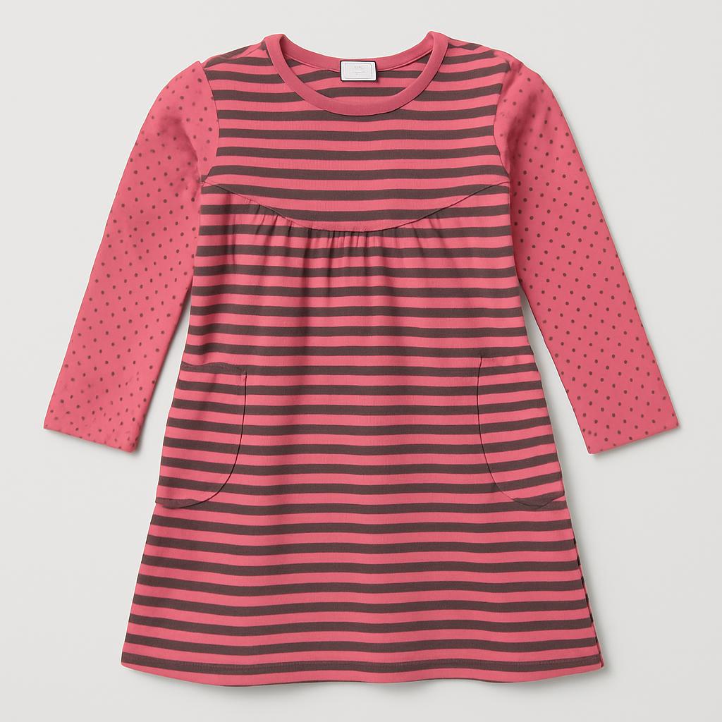 Questa adorabile vestitino a righe, in un delizioso mix di rosa e grigio, è perfetto per le piccole sognatrici! Con maniche lunghe a pois rosa, porta un tocco di allegria e originalità. Il taglio morbido e comodo è ideale per muoversi libere nelle avventure quotidiane. Le pratiche tasche laterali aggiungono un tocco di funzionalità e permettono di portare con sé piccoli tesori. Nonostante sia un capo usato, si presenta in ottime condizioni, pronto a diventare il preferito del guardaroba! Perfetto per ogni occasione, sarà un capo versatile e stiloso!