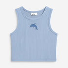 Scopri questo adorabile top senza maniche in un tenero blu pastello, perfetto per le calde giornate estive! Realizzato in tessuto a costine, offre comfort e freschezza. La deliziosa applicazione di un delfino sul davanti aggiunge un tocco marino e giocoso, ideale per le piccole amanti del mare. Questo capo usato è in ottime condizioni e si abbina facilmente a pantaloni o shorts per un look casual e alla moda. Un must-have per ogni piccola sognatrice pronta a tuffarsi in nuove avventure!