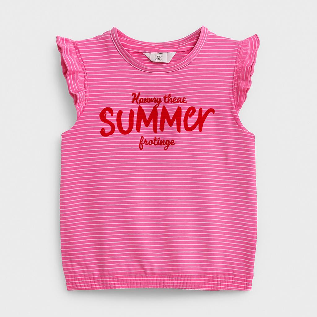Questa adorabile t-shirt a righe rosa è perfetta per far brillare il guardaroba della tua piccola! Con una scritta luccicante "SUMMER feelings", questa maglietta cattura lo spirito estivo. Le maniche a palloncino, leggere e fresche, aggiungono un tocco romantico, rendendola ideale per le giornate di sole. In ottime condizioni nonostante sia usata, è il capo perfetto per le piccole esploratrici che amano divertirsi e sentirsi alla moda! Un must-have per i mesi caldi!