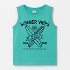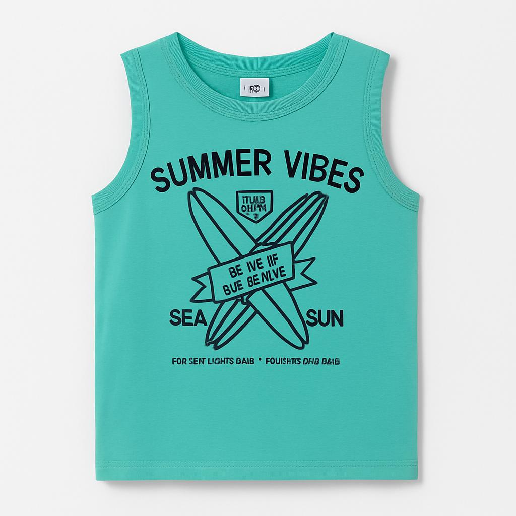 Questa fresca canotta verde menta è perfetta per le calde giornate estive! Con il suo design vivace, caratterizzato dalla scritta "SUMMER VIBES" e icone marine, trasmette un’atmosfera di vacanza e avventura. Realizzata in un tessuto morbido e leggero, assicura comfort durante il gioco e le attività all'aperto. Le maniche corte e il taglio ampio la rendono ideale per ogni piccolo esploratore! Nonostante sia un capo usato, è in ottime condizioni e pronto a regalare momenti indimenticabili sotto il sole. Un must-have per ogni guardaroba estivo!