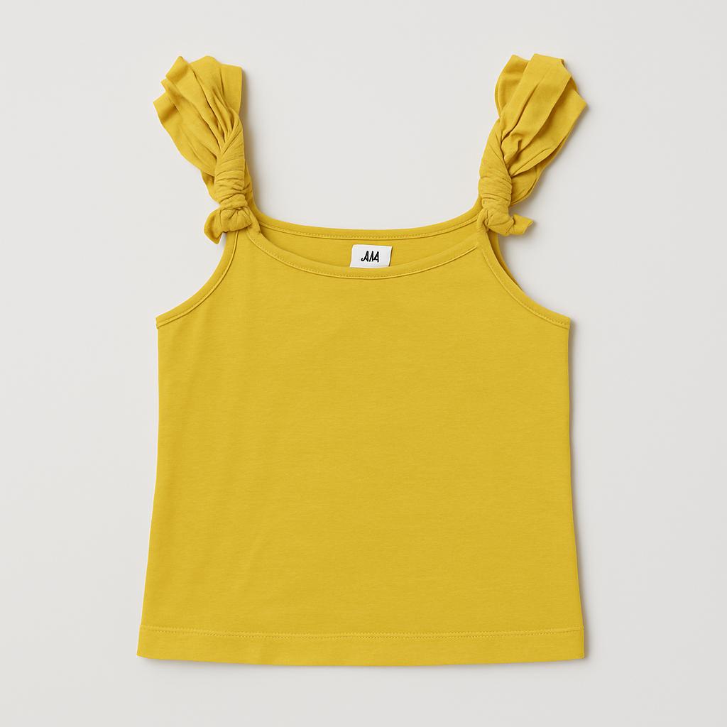 Questa deliziosa canotta gialla è il capo perfetto per la stagione estiva! Realizzata in jersey di cotone morbidissimo, offre comfort e freschezza alle piccole allegrie. I spallini arricciati aggiungono un tocco di dolcezza e femminilità, rendendo ogni outfit ancora più speciale. Ideale per le giornate di sole, è versatile per affrontare giochi o passeggiate nel parco. Nonostante sia usata, è in ottime condizioni e pronta per essere indossata con stile. Un must-have da non perdere per le piccole modaiole!