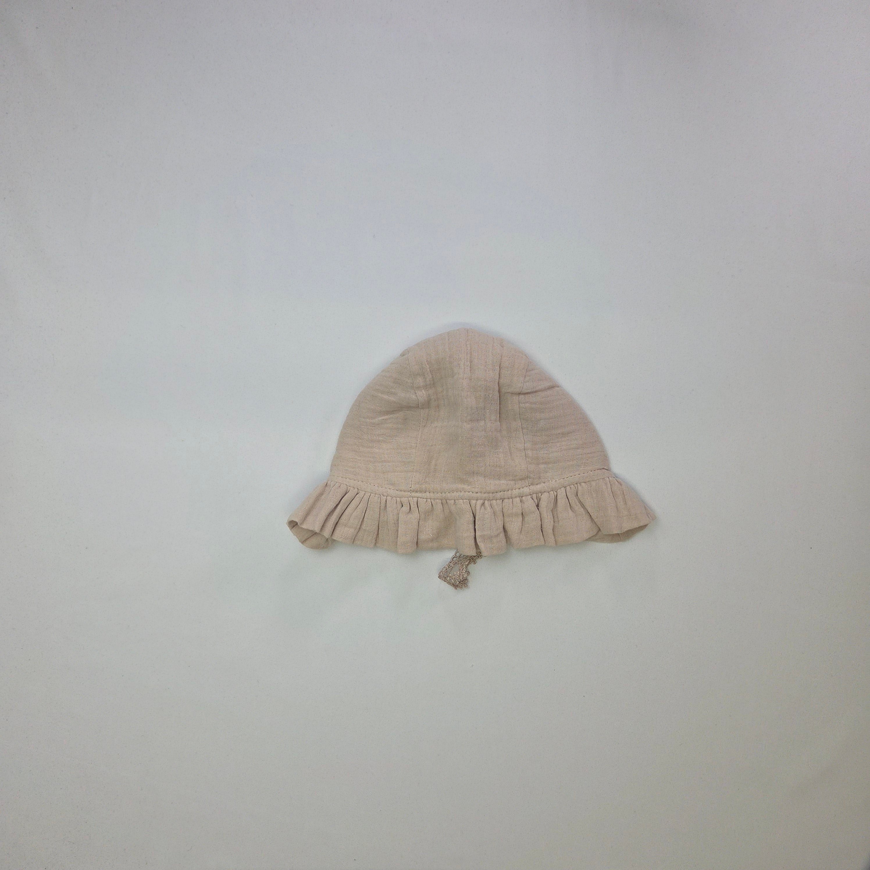 Questo adorabile cappellino in cotone leggero è il perfetto accessorio per le piccole fashioniste in cerca di stile e protezione dal sole! Il suo delicato colore beige si abbina facilmente a qualsiasi outfit, mentre il bordo arricciato aggiunge un tocco di femminilità. Dotato di pratiche stringhe, rimarrà ben fermo anche durante le avventure all'aperto. Nonostante sia un capo usato, si presenta in ottime condizioni, pronto a far brillare il sorriso della tua bimba. Un must-have per le giornate estive!