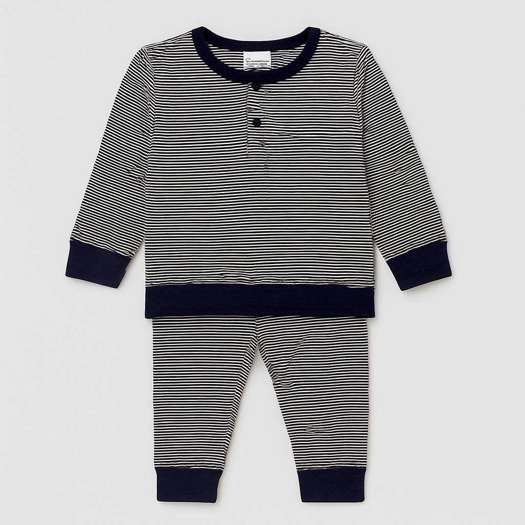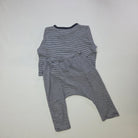 Questo adorabile pigiama a righe è perfetto per le dolci notti dei vostri bambini! Realizzato in morbido cotone, presenta una combinazione di righe blu e bianche che aggiungono un tocco di stile. La maglietta a maniche lunghe è comoda e pratica, ideale per le fresche serate, mentre i pantaloni affusolati garantiscono una vestibilità comoda per dormire serenamente. Anche se usato, il pigiama è in ottime condizioni, pronto per accompagnare i sogni dei vostri piccoli. Un capo ideale per coccole e avventure notturne!