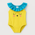 Questo allegro costume da bagno intero in un vivace giallo sole è perfetto per le giornate di divertimento in spiaggia! Con un adorabile colletto azzurro e un simpatico volto sorridente stampato sul davanti, questo costume porta un sorriso e tanta gioia a ogni tuffo. Realizzato in un morbido tessuto elastico, garantisce comfort e libertà di movimento durante il gioco in acqua. Nonostante sia un capo usato, si presenta in ottime condizioni, pronto per essere indossato da una piccola nuotatrice. Un must-have per le piccole che amano l'estate e divertirsi con stile!