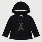 Questo adorabile felpa nera renderà il guardaroba della tua piccola davvero speciale! Con un design elegante e alla moda, presenta un cappuccio che aggiunge un tocco accogliente e trendy. Sul davanti, la originale stampa della Torre Eiffel in strass scintillanti dona un fascino parigino, mentre il cuore dorato aggiunge un tocco di dolcezza.