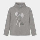 Questa dolcissima maglietta grigia con colletto alto è perfetta per le piccole trendsetter! Realizzata in un comodo tessuto morbido, presenta una graziosa stampa di un fiocco argentato che dona un tocco di brillantezza. La scritta “Hello Beautiful” aggiunge un messaggio positivo e affettuoso. Con le sue maniche lunghe, è ideale per le giornate fresche, rendendo ogni outfit elegante e casual al tempo stesso. Usata ma in ottime condizioni, sarà l'aggiunta perfetta nel guardaroba di ogni piccola amante della moda!