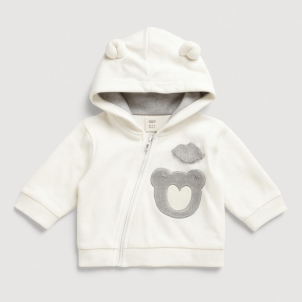 Questa adorabile giacca con cappuccio è perfetta per tenere al caldo il tuo piccolo durante le giornate fresche! Realizzata in morbido cotone bianco, presenta un dolce motivo di orsetto che aggiunge un tocco di tenerezza. I piccoli orecchi sul cappuccio rendono questo capo ancora più giocoso e divertente! Con una comoda zip e maniche lunghe, è ideale per essere indossata sopra magliette o t-shirt. Anche se è un capo usato, si trova in ottime condizioni, pronto per accompagnare il tuo bimbo in tutte le sue avventure! Un must-have per un guardaroba accogliente e stiloso!