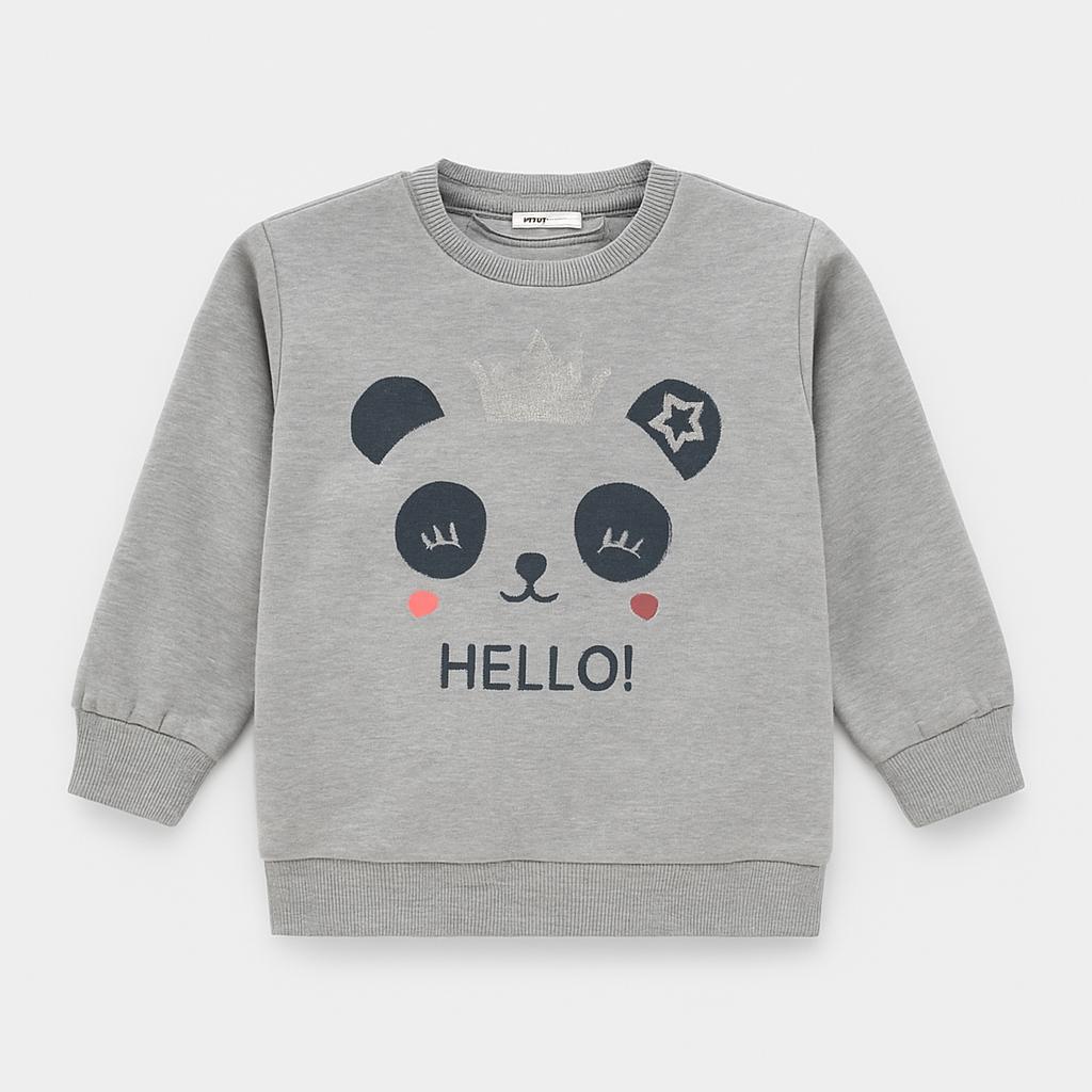 Questo adorabile pullover grigio è perfetto per le piccole amanti degli animali! Con una dolce grafica di un panda sorridente decorato da una tiara e la scritta "HELLO!", questo capo è un mix di praticità e stile. Realizzato in morbido cotone, offre comfort e calore per le giornate fresche. Le maniche lunghe e il design semplice lo rendono facile da abbinare a jeans o leggings. Pur essendo usato, si presenta in ottime condizioni e sarà sicuramente un favorito nel guardaroba della tua bambina, aggiungendo un tocco giocoso a qualsiasi outfit!