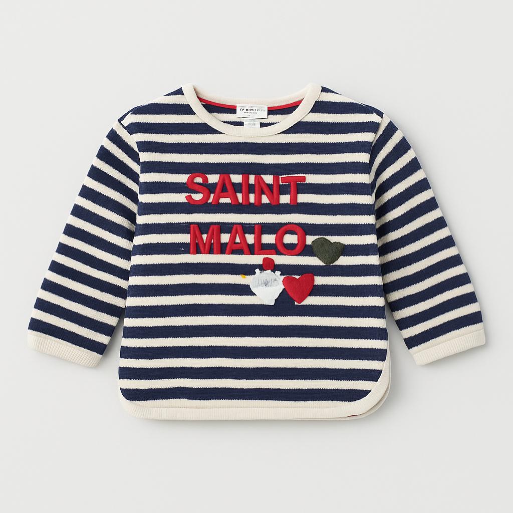 Questo adorabile maglione a righe di Saint Malo è un vero tesoro da aggiungere al guardaroba del tuo piccolo! Con un affascinante motivo a righe blu e bianche e delicati dettagli ricamati, il design è giocoso e raffinato. La scritta "SAINT MALO" in rosso vivace cattura subito l'attenzione, mentre l'immagine di un simpatico pesciolino aggiunge un tocco di allegria. Le maniche lunghe e il taglio confortevole lo rendono perfetto per le giornate fresche, ideale per avventure outdoor o momenti di gioco indoor. Nonostante sia un capo di seconda mano, appare in buone condizioni, pronto per portare un sorriso sul volto del tuo bambino! Un must per piccoli esploratori!