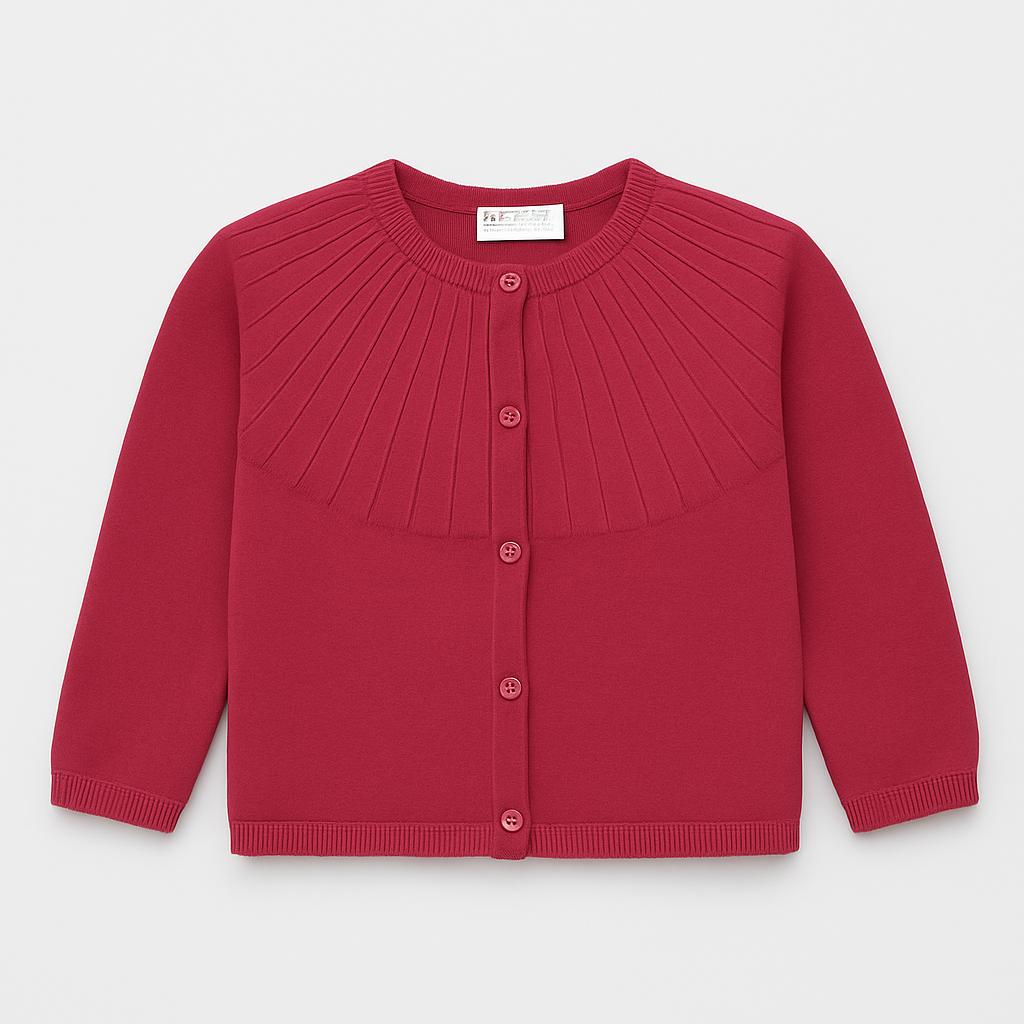 Questo delizioso cardigan in un vivace color fucsia è perfetto per tenere caldo il guardaroba della tua piccola! Realizzato in morbido cotone, presenta una raffinata lavorazione a coste sul collo, che aggiunge un tocco di eleganza. Le maniche lunghe e il chiuso con bottoni lo rendono pratico e comodo, ideale per ogni occasione, sia che si tratti di una giornata a scuola o di una passeggiata al parco. Nonostante sia un capo usato, si trova in ottime condizioni ed è pronto per accompagnare la tua bambina in nuove avventure! Un must-have per ogni piccola fashionista!