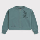 Questo adorabile bomber in morbido cotone di un'incantevole tonalità verde acqua è perfetto per le piccole esploratrici! Con una leggera vestibilità cropped, aggiunge un tocco trendy a qualsiasi outfit. La chiusura frontale con zip e il delicato ricamo floreale sul petto lo rendono unico e affascinante. Le maniche lunghe offrono comfort e calore nelle fresche giornate primaverili, ideale da abbinare a t-shirt colorate e jeans. Nonostante sia un capo usato, si presenta in ottime condizioni, pronto per accompagnare nuove avventure con stile! Un must-have da aggiungere al guardaroba.