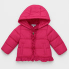 Questa adorabile giacca imbottita fucsia è l'ideale per tenere al caldo la tua piccola durante le fredde giornate invernali! Realizzata in un morbido materiale, presenta un elegante profilo con volant sul davanti e una delicata decorazione floreale. Il cappuccio offre una protezione extra, mentre la chiusura con zip garantisce facilità d'uso. Leggera e comoda, è perfetta per accompagnare ogni avventura, dal parco alla scuola. Nonostante sia un capo usato, si trova in ottime condizioni, pronta per essere indossata da una piccola esploratrice con stile!