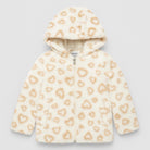 Questa adorabile giacca in pelliccia sintetica è l'aggiunta perfetta al guardaroba della tua piccola! Con una base bianca morbida e soffice, è decorata da un simpatico motivo a cuoricini in tonalità beige. La felpa con cappuccio non solo offre calore, ma aggiunge anche un tocco di dolcezza a qualsiasi look. Ideale per le giornate più fresche, la giacca avvolgerà il tuo bambino in un abbraccio caldo e coccoloso. Sebbene sia un capo usato, si trova in ottime condizioni, pronta per accompagnare tante avventure invernali con stile!
