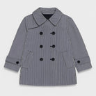 Questo elegante cappotto a righe per bambini è un pezzo intramontabile! Realizzato in un morbido tessuto, presenta una raffinata vestibilità oversize e un collare ampio che dona un tocco chic. I bottoni neri e il design doppiopetto aggiungono un charme classico, perfetto per le piccole che amano distinguersi. Ideale per le giornate fresche, questo cappotto è perfetto per ogni occasione, dal parco a eventi speciali. Nonostante sia usato, si presenta in ottime condizioni e pronto a portare stile e comfort nel guardaroba dei tuoi bimbi!