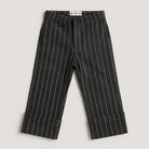 Questi eleganti pantaloni a righe, perfetti per i piccoli esploratori di moda, aggiungeranno un tocco di stile a qualsiasi outfit! Con il loro design a righe bianche su fondo grigio scuro, questi pantaloni offrono un look trendy e sofisticato.