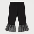 Questi graziosi leggings neri sono il perfetto mix di comfort e stile per le piccole fashioniste! Realizzati in un morbido cotone, presentano un'elegante finitura in tulle con pois neri che aggiunge un tocco di divertente raffinatezza. Il taglio a palazzo con dettagli sbarazzini sul fondo rende questi pantaloni ideali per ogni occasione, dalle feste ai pomeriggi di gioco. Anche se sono capi usati, sono in ottime condizioni e pronti ad arricchire il guardaroba della tua bimba. Un'opzione versatile e chic che le farà brillare in ogni momento!