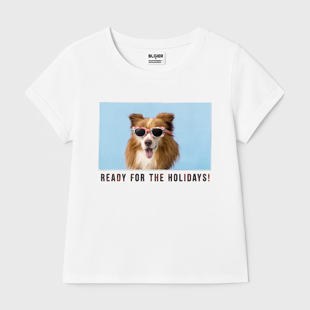 Questa adorabile t-shirt è perfetta per le piccole amanti degli animali! Realizzata in morbido cotone bianco, presenta una divertente stampa di un cane con occhiali da sole che sprigiona un'atmosfera vacanziera. La scritta “READY FOR THE HOLIDAYS!” in rosso aggiunge un tocco giocoso e allegro, ideale per le avventure estive. Le maniche corte e il taglio rilassato garantiscono comfort e libertà di movimento, rendendola perfetta per giochi e attività all'aperto. Leggermente usata ma in ottime condizioni, sarà un capo che porterà sorrisi e felicità nel guardaroba di ogni bimbo!