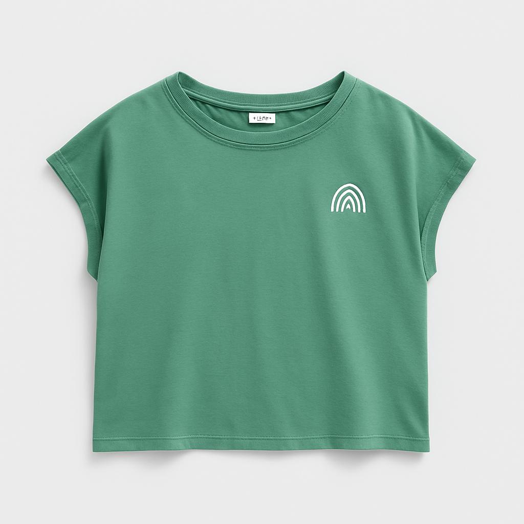 Questa adorabile t-shirt verde acqua è perfetta per le piccole che amano esprimere il loro stile unico! Realizzata in un morbido cotone, offre il massimo comfort per le avventure quotidiane. Il design cropped la rende fresca e di tendenza, ideale per abbinamenti divertenti con gonne o pantaloni. Sul fronte, una delicata stampa ad arcobaleno aggiunge un tocco di allegria, mentre le maniche corte garantiscono libertà di movimento. Anche se usata, si presenta in ottime condizioni e pronta per essere indossata con orgoglio! Un capo essenziale per il guardaroba estivo delle giovani fashioniste!