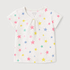 Questa adorabile t-shirt è perfetta per le piccole sognatrici! Realizzata in morbido cotone, presenta un fresco sfondo bianco punteggiato da stelle colorate in tonalità vivaci come il rosa, il giallo e il verde. Il taglio leggermente svasato e le maniche corte offrono comfort e libertà di movimento, ideali per giochi e avventure estive. Nonostante sia un capo usato, è in ottime condizioni e pronta a portare un tocco di magia nel guardaroba della tua bambina. La t-shirt ideale per brillare in ogni occasione!